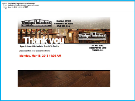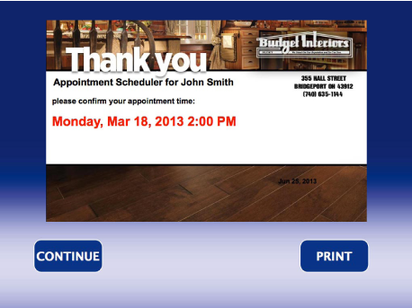 Once the visitors schedule an appointment online at their PURL, they can view their appointment confirmation on the screen, or receive the confirmation by an email or both.